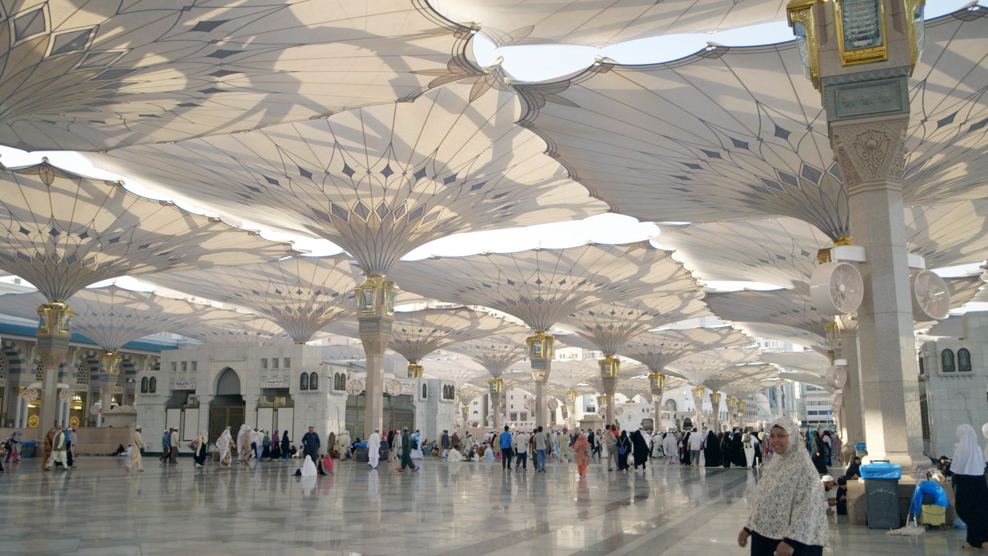 Uitvouwbare parasols voor het buitenplein van Al Masjid al-Nabawi (de Moskee van de Profeet) in Medina, ontworpen in 2011 door dr. Mahmoud Bodo Rasch. Foto: SL Rasch.